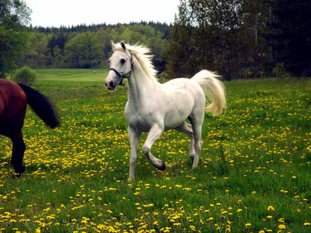 Gröna sommarängar och stolt springande med högburen svans. Han hade förmånen att få vara helt ensam i stohagen. Oj, vad jobbigt det var. Han skulle ju vara vacker hela tiden. Han förstod nog inte att det var just det han var. Hela tiden. Även när han inte bröstade upp sig och skrek när han rusade runt framför stona (ja, han gnäggade inte, han skrek).