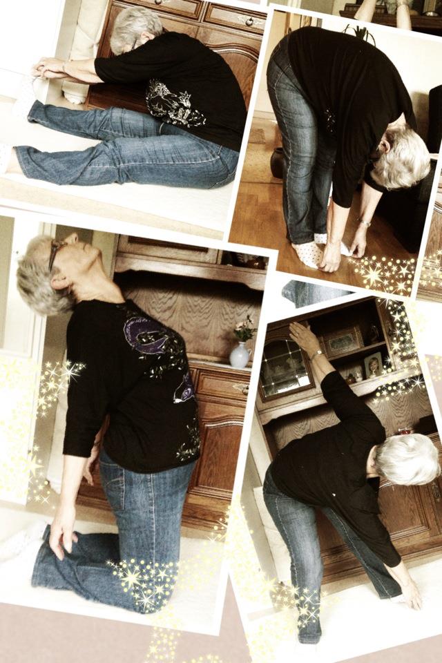 Dotter som fick se Mormor visa lite yogarörelser iklädd jeans och tröja. Och passade på att fota lite. Mormor som närmar sig 80.