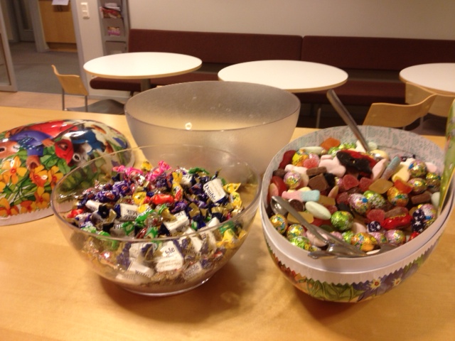Sen är det påsk. Och även om mitt jobb där jag är halvtid på dagarna har effektiviserat, rationaliserat och sagt upp folk så firas det påsk just nu. Och vad händer då, tror du? 20 kilo smågodis står i byttor i fikarummet. Påskägg kommer som presenter för att vi varit duktiga. Jättesnällt tycker jag. Jag uppskattar verkligen omtanken från alla snälla. Men mest av allt uppskattar jag att jag inte känner suget. Kan lätt och ledigt stå och titta på när andra äter. Det gör mig inte ett minsta. Trot om du vill men så är det faktiskt. Jag tror att det är så enkelt att jag hittar en utmaning i att testa min självdiciplin och det på riktigt under så lång tid som 40 dagar. Det är helt enkelt inte för mig det där godiset. (Även om det finns massor av punchpraliner och gräddkola där..). Jag känner att jag växer för varje dag jag håller fast vid mitt beslut och min matrutin.