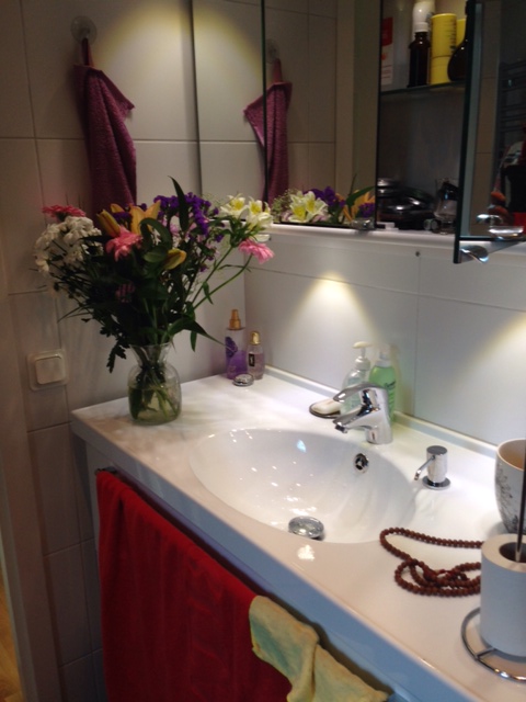 Bortsett från min Toyota, min Mac och min Padda så står mitt badrum högt i rang. När jag sitter i min farmors gamla fåtölj och har fötterna på det varma golvet iklädd morgonrock och varma handdukar och borstar håret på morgonen så finns det inga sorger. Bara välbefinnande. Sicken lycka att få sitta på en sådan här plats i livet. Mitt badrum, som inte har något badkar, är som en möbel hela rummet. Kanske saknar jag ibland badkaret men ytterst sällan. Däremot älskar jag att öppna fönstret och kika ut rätt ut i min härliga trädgård. Kontemplera i fåtöljen och smörja in fötterna och sätta på mig sockor och lyssna på Ajan Brahm i medhavd Padda. Dörren till sovrummet är öppen och dörren till hallen likaså. Huset är tyst och stilla. Just nu. Har för tillfället stormande mycket folk på övervåningen som bor där en stund. Men just nu verkar alla sova. Kattan har fått mat och jag njuter. Blomman sonen gav står och lyser. Jag ska till jobbet efter en fin helg. Igår var jag tillsammans med en av mina äldre vänner i skogen på Bogesund. Vi gick i detta vackra naturreservat och sen fikade vi på Bogesunds Slotts vandrarhems söta fik. Med hembakat i solen. Länge pratade vi. Och nu är jag glad för ett enkelt men väldigt värdefullt minne. För den människan som jag fördrev söndagen med är en sån där människa som är en människa. På riktigt. Varm, go, intelligen och snäll. Med både hjärta och hjärna!