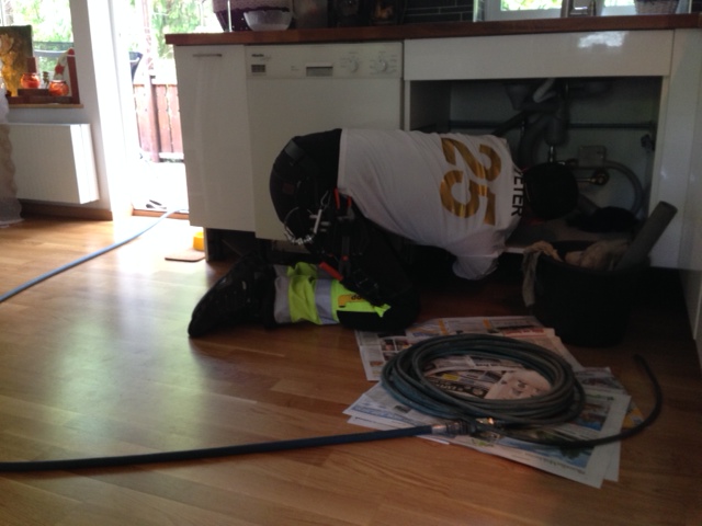 Slut i rutan. Nu är det allvar. Jag hade ingen aaaning om att det tillhörde husets underhållsplan att med regelbundenhet spola avloppsrören under huset. Jag har bott i och skött detta hus sedan i mitten på århundradet och jag har aldrig vetat om detta. Än mindre förstått att det finns ett skrå som sysslar med sådant professionellt. Duktiga, snabba och med direkt verkansgrad.