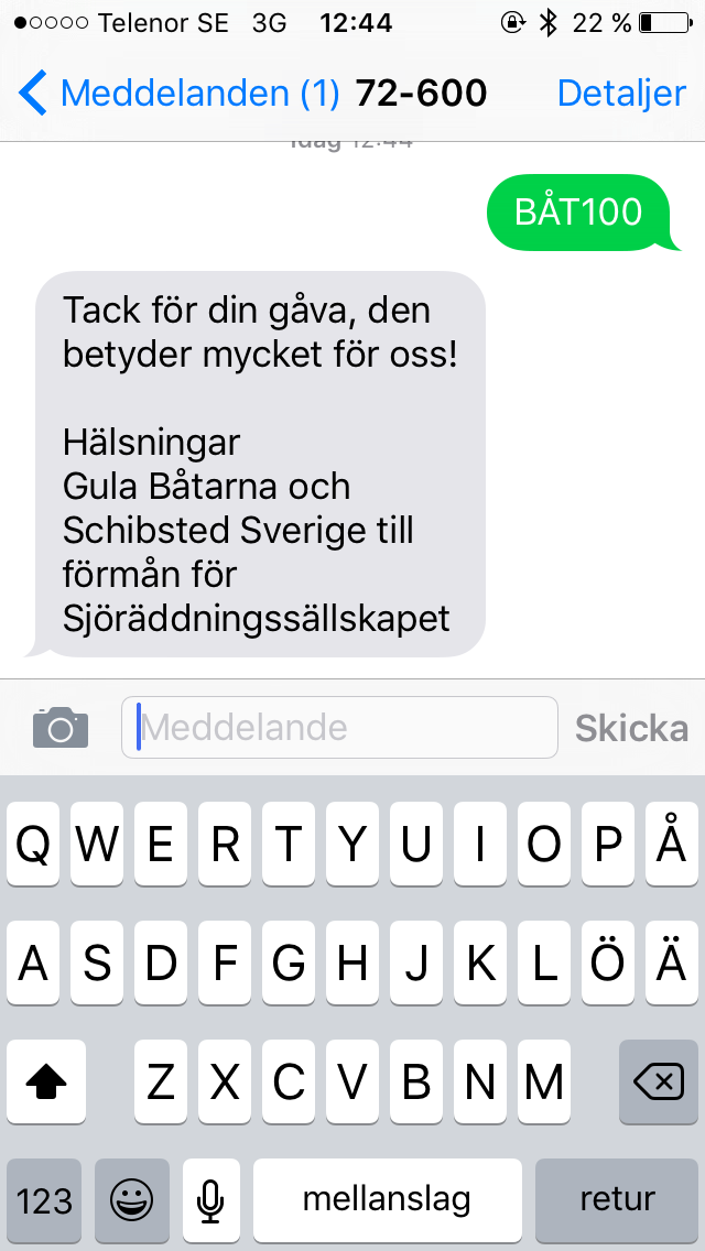 SMS:a BÅT100, BÅT200, BÅT300 eller BÅT500 till 72600