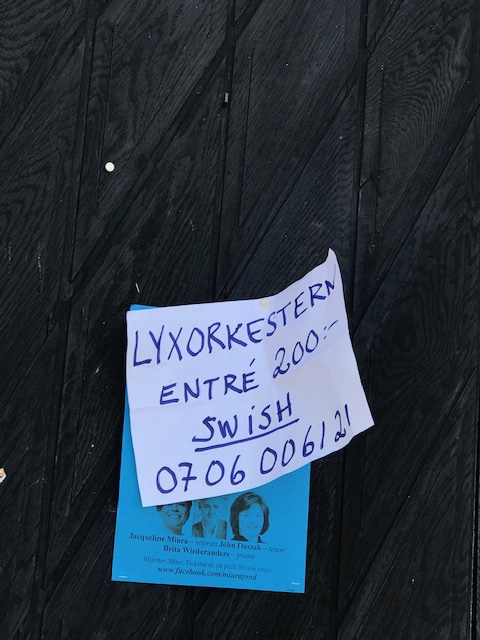 Sandhamns höjdpunkt ligger högt uppe på ett berg bredvid ett vattentorn. Utsikten är bedårande och öppnar upp oändligheten inom en. Så långt ögat kan nå och se är det vackert intill andlighetens gräns. Solen strålar och det är lagom varmt just idag. Här ligger Sandhamns Kapell, en vitstrålande byggnad i vackraste, renaste stil. I detta smycke till byggnad spelas det musik som öppnar alla sinnen i kroppen. Tonerna från instrumenten och sången sitter i direkt kontakt med hela kroppen och alla muskler i ansiktet vill bara le, ja nästan skratta högt av glädje. Ibland är det så bedårande högtidligt ljuvt och vackert att tårarna nästan kommer. Ibland ligger hänförenheten där, över en spelemans ekvilibristiska förmåga att få sitt instrument att leva i samklang med mitt innersta väsen. Ibland ljuder rösten ut över salighetens rum ( det är ju ett Kapell, Gubevars…) och ger rysningar av välbehag. Och jag som inte ens är religiös… Magin som uppstår när dessa fantastiska musiker gör helt orimligt härligt med sina instrument måste vara ett väsen likt det gudomliga… Och inte nog med det, de är rara, roliga och trevliga också!