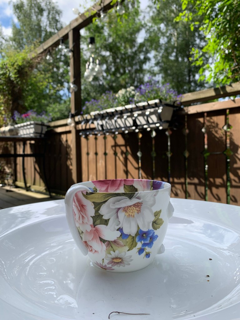 Koppen med sina vackra blommor har varit en beständig påminnelse om att allt kommer och går. Mörker kommer och går. Ljus kommer och går. Jag har alltid vetat att även koppen har en cykel. Så jag blev inte ledsen när den tappade sitt öra. Det kom stora känslor av tacksamhet över hur mycket den bidragit med i mitt liv, i all sin lilla lilla enkelhet. Inte blir man ledsen när konserten är slut. Man går därifrån i glädje över det man fått uppleva genom tonerna.